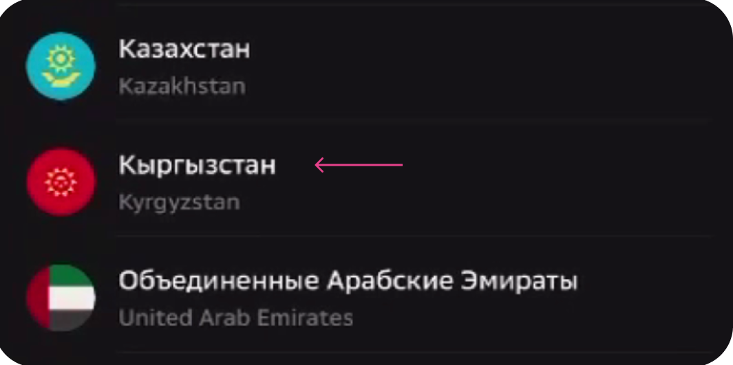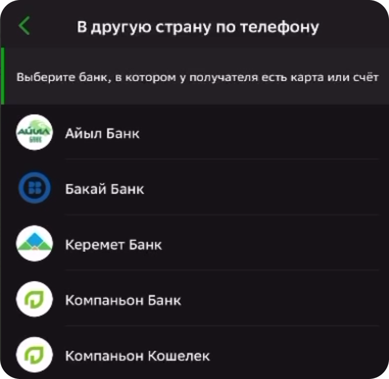 Пользователю необходимо выбрать страну и способ зачисления (в нашем случае это Кыргызстан и перевод по номеру телефона) и вставить скопированный номер телефона